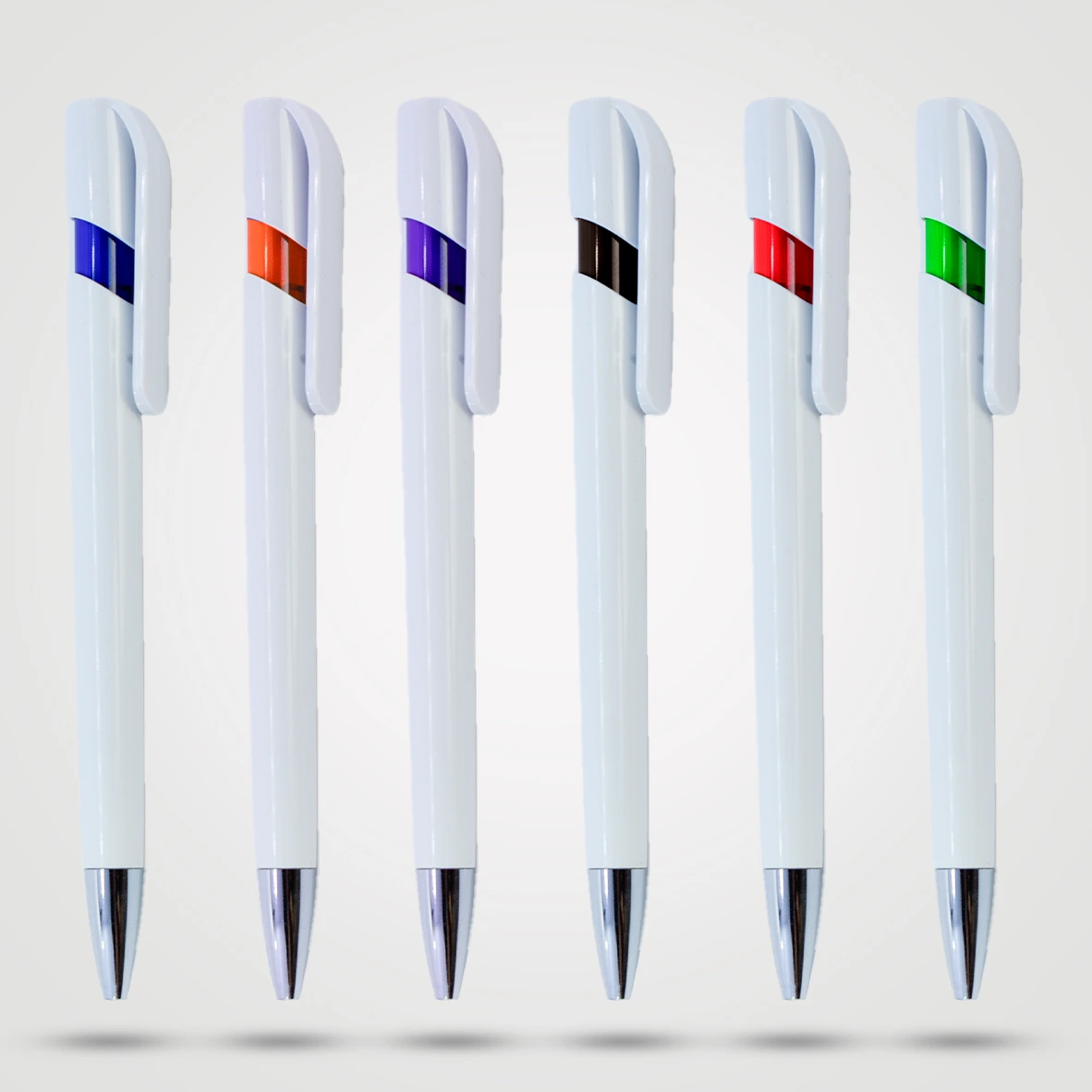 Donde la practicidad se encuentra con un toque de color. Este bolígrafo presenta un cuerpo blanco puro con vibrantes detalles de color en el clip, creando un contraste moderno y accesible. Su diseño es ligero y versátil, priorizando la comodidad en el uso diario sin sacrificar el estilo. Es la solución económica y efectiva para campañas de alto volumen, asegurando que tu marca se mantenga visible y fresca.
