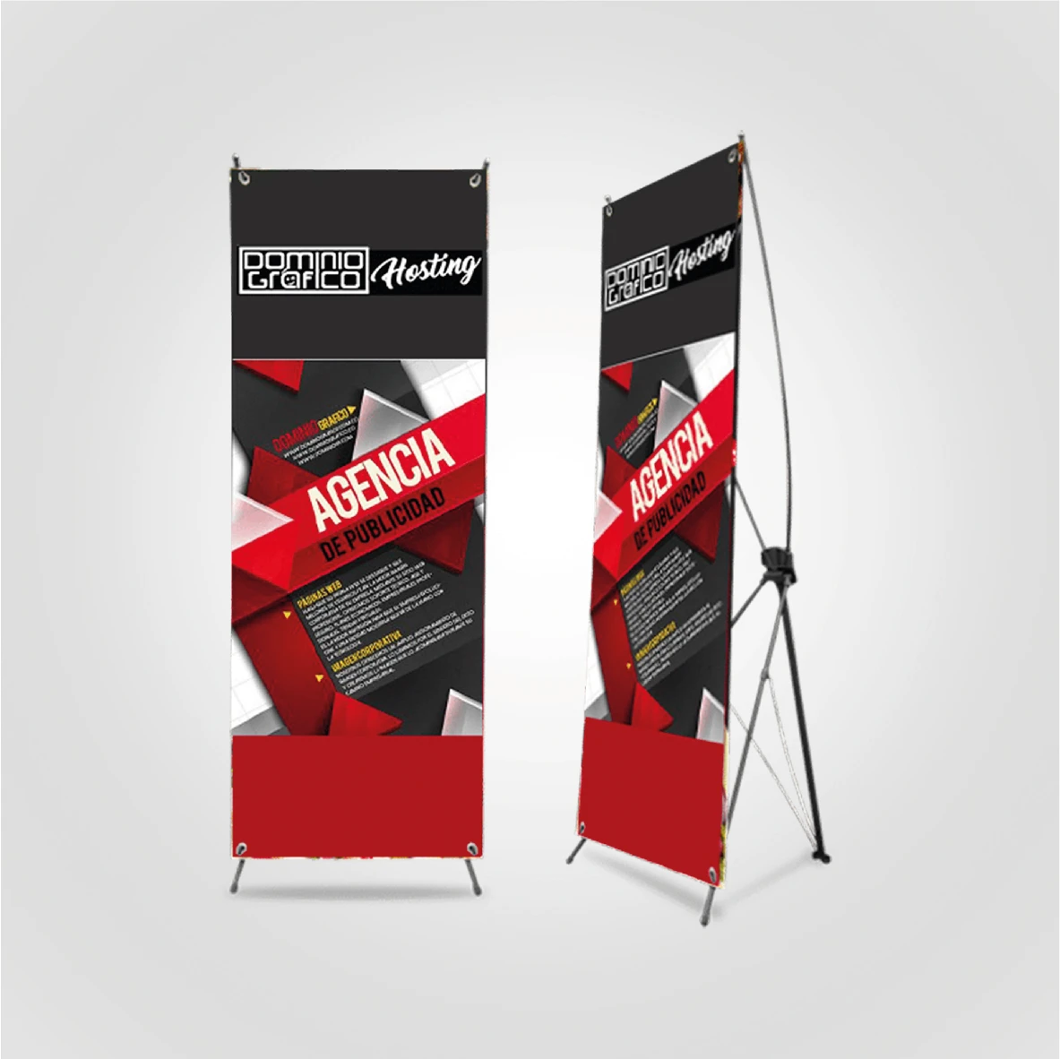Maximiza tu presencia en espacios amplios. Con una mayor altura y visibilidad, esta araña ofrece una estructura aún más resistente sin sacrificar su portabilidad. Es la solución perfecta para lobbies de hotel, salones de eventos y lanzamientos donde necesitas dominar el espacio visual con un mensaje claro y profesional.
