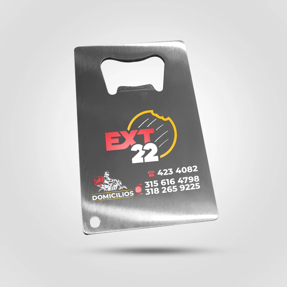 Funcionalidad ingeniosa que siempre está a la mano. Este abridor de botellas funcional, fabricado en aluminio resistente y duradero, incorpora imanes integrados en su base. Esto permite fijarlo de forma segura a cualquier superficie metálica (neveras, muebles de oficina), manteniendo tu marca siempre visible y útil en momentos de descanso y socialización.