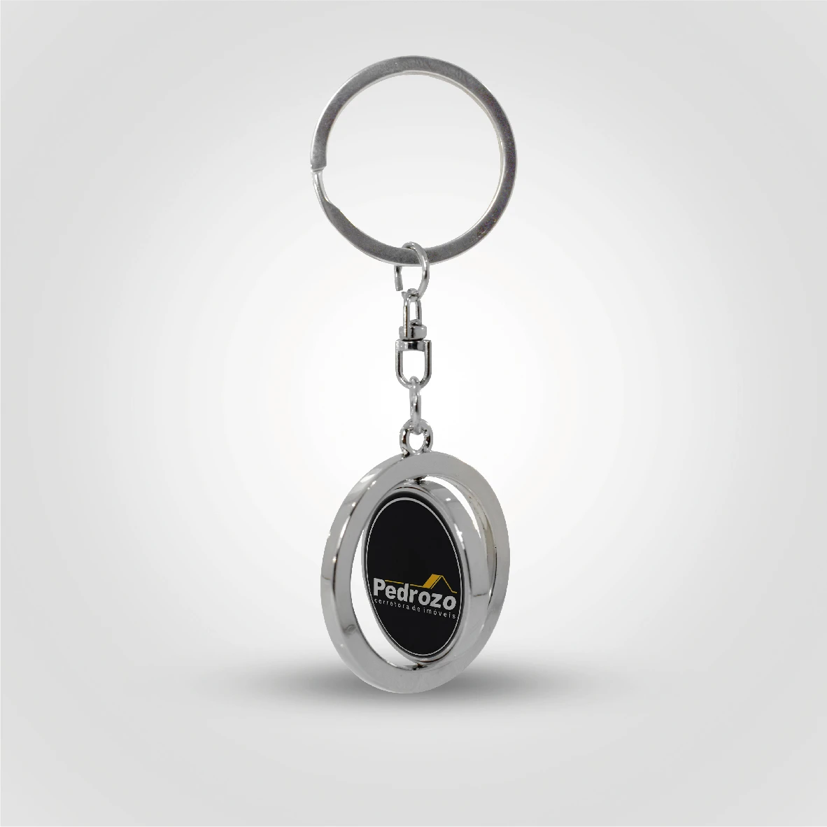 Innovación y estilo en la palma de la mano. Este llavero fusiona la forma circular clásica con un innovador inserto central, que puede personalizarse con un medallón acrílico para tu logo. Su acabado metálico elegante lo convierte en más que un llavero; es un detalle ingenioso y moderno para sorprender a clientes exigentes.