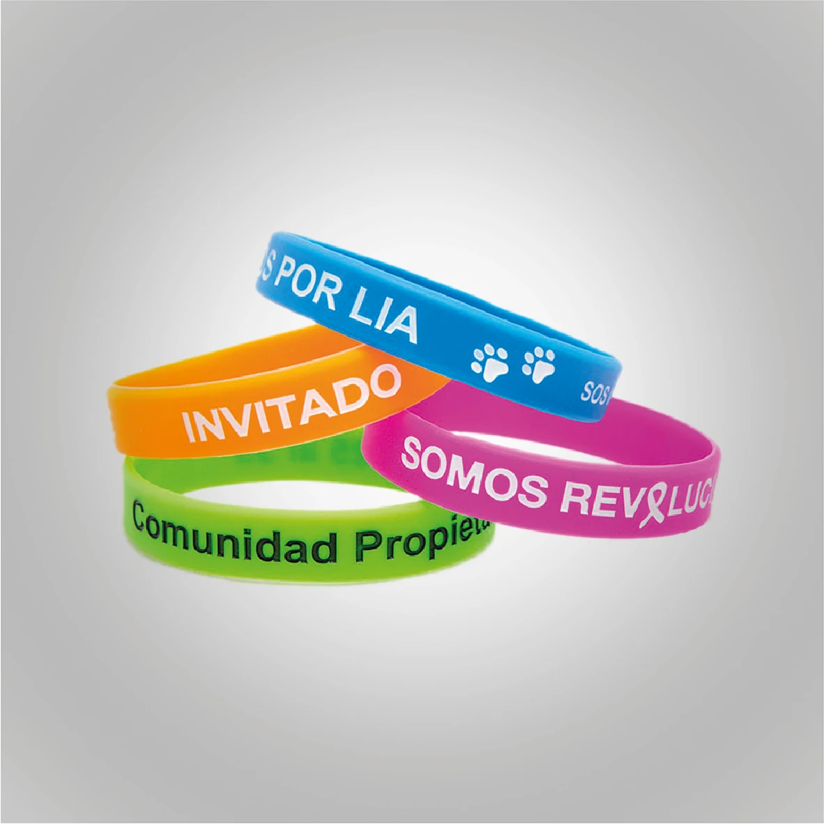 Comodidad y mensajería en la muñeca. Elástica, hipoalergénica y extremadamente cómoda para el uso diario. Disponible en múltiples colores vibrantes, es perfecta para campañas de fitness, eventos deportivos, promociones o como símbolo de apoyo a una causa. Su superficie permite la personalización con mensajes o logos de forma clara y duradera.